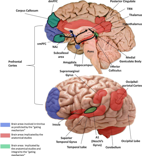 What it is: Tinnitus is a sensation of noise (ringing or roaring) that can only be heard by the affected person and is typically caused by a bodily condition, such as a disturbance of the auditory nerve or wax in the ear. People with tinnitus experience the sound in the absence of a corresponding external source. Many people describe a ringing, but for some, tinnitus takes the form of a high-pitched whining, buzzing, hissing, humming, or whistling.